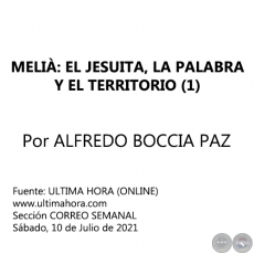 MELIÀ, EL JESUITA, LA PALABRA Y EL TERRITORIO (2) - Por ALFREDO ...