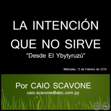 LA INTENCIÓN QUE NO SIRVE - Desde El Ybytyruzú - Por CAIO SCAVO...