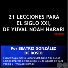 21 LECCIONES PARA EL SIGLO XXI, DE YUVAL NOAH HARARI - Por BEATRI...