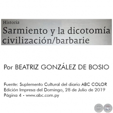 SARMIENTO Y LA DICOTOMÍA CIVILIZACIÓN/BARBARIE - Por BEATRIZ GO...