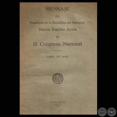 MENSAJE DEL PRESIDENTE DE LA REPÚBLICA EUSEBIO AYALA, ABRIL 1933