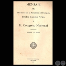 MENSAJE DEL PRESIDENTE DE LA REPÚBLICA EUSEBIO AYALA, ABRIL 1934