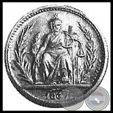 During the War of the Triple Alliance (1864-1870) in which Paraguay faced Argentina, Brazil and Uruguay, the ladies of Asuncion gathered in an assembly on February 24, 1867, and decided to "give up their jewels" in order to help the national defense. The President of the Republic, Francisco Solano Lopez accepted the offering and ordered one twentieth of it to be used to mint the first Paraguayan gold coinage, according to the Decree of the 11th of September, 1867.