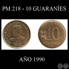 PM 218 - 10 GUARANÍES – Motivo: GENERAL EUGENIO A. GARAY (Anverso)/ GANADERÍA (Reverso). Tamaño: 19,50 mm.