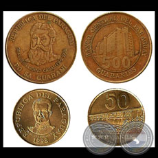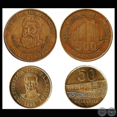 1998 - 50 y 500 GUARANÍES - ACUÑADAS EN KROPF - ALEMANIA Y EN LA ROYAL MINT - INGLATERRA - METAL: LATÓN (DESMONETIZADAS EN 2011)
