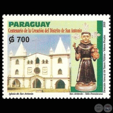 CENTENARIO DE LA CREACIÓN DEL DISTRITO DE SAN ANTONIO – IGLESIA y TALLA FRANCISCANA DE SAN ANTONIO : 700 GUARANÍES