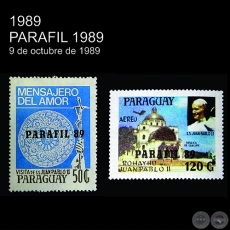 EXPOSICIÓN PARAFIL 1989/ BASÍLICA DE CAACUPÉ - SU SANTIDAD JUAN PABLO II, MENSAJERO DEL AMOR : 50 – 120 GUARANÍES