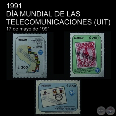 DIA MUNDIAL DE LAS TELECOMUNICACIONES U.I.T. (RESELLADO POR LA SERIE COLOQUIO SOBRE MODELO DE EMPRESA POSTAL UPAE – JULIO 1990) : 200 - 250 – 350 GUARANÍES
