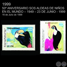 50º ANIVERSARIO S.O.S - ALDEA DE NIÑOS EN EL MUNDO – 1949 – 23 DE JUNIO - 1999 : 1.700 - 1.900 GUARANÍES