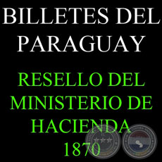 En los billetes de 1870, en el reverso vemos dos sellos: uno, en azul con el escudo, estrella, palma y olivo, con la leyenda "MINISTERIO DE HACIENDA".