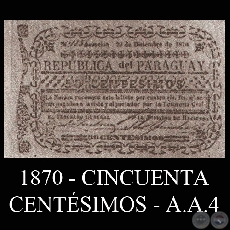 A.A.4 - CINCUENTA CENTÉSIMOS - FIRMAS: TOMÁS GREENSHIELDS - JOSÉ TORIBIO ITURBURU