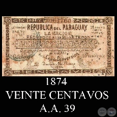 A.A. 39 - VEINTE CENTAVOS - FIRMAS: MANUEL SOLALINDE - OSCARIZ