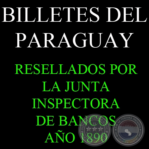 BILLETES RESELLADOS EMITIDOS ORIGINALMENTE ENTRE 1882 POR "EL BANCO DEL PARAGUAY" y 1886 POR "EL BANCO NACIONAL DEL PARAGUAY"