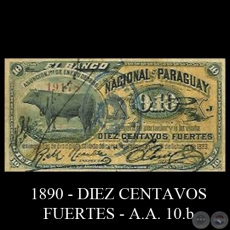 A.A. 10.b - DIEZ CENTAVOS FUERTES (1886) - FIRMAS: PEDRO MIRANDA - E. CORREA - ..... - .....