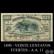 Los billetes de ese banco (1883-1886), para ser puestos en circulación, fueron estampados con un “sello especial” que dice: “Banco Nacional del Paraguay – Por Ley 25 de julio de 1890”.