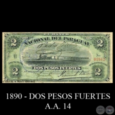 A.A. 14 - DOS PESOS FUERTES (1883) - FIRMAS: MANUEL BARRIOS - PEDRO JORBA - JOSÉ URDAPILLETA