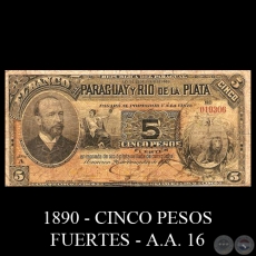 A.A. 16 - CINCO PESOS FUERTES (1889) - FIRMAS: JOSÉ URDAPILLETA - CORREA - BRAULIO ARTECONA