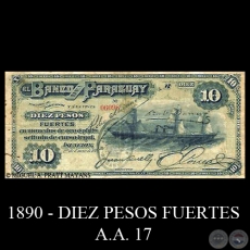 A.A. 17 - DIEZ PESOS FUERTES (1882) - FIRMAS: PEDRO MIRANDA - JUAN QUELL - E. CORREA