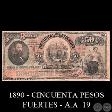 A.A. 19 - CINCUENTA PESOS FUERTES (1886) - FIRMAS: PEDRO MIRANDA - J.E. SAGUIER - E. BEDOYA