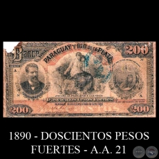 A.A. 21 - DOSCIENTOS PESOS FUERTES (1889) - FIRMAS: JOSÉ URDAPILLETA - A. CORREA