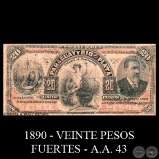 A.A. 43 - VEINTE PESOS FUERTES (1889) - FIRMAS: JUAN B. GAONA - ..... - .....