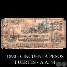 A.A. 44 - CINCUENTA PESOS FUERTES (1889) - FIRMAS: JOSÉ URDAPILLETA - ..... - .....