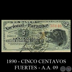 A.A 09 - CINCO CENTAVOS FUERTES (1886)- FIRMAS: JOSÉ URDAPILLETA - J.E. SAGUIER