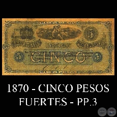 P.P.3 - CINCO PESOS FUERTES - EMITIDOS POR LEZICA Y LANÚS - PROVEEDURÍA DEL EJÉRCITO;