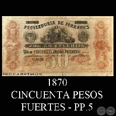P.P.5 - CINCUENTA PESOS FUERTES - FIRMAS: J.M. ARGOLLA – BARTOLOMÉ JODÍN - PROVEEDURÍA DE FORRAJES;