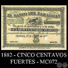 MC072 – CINCO CENTAVOS FUERTES – FIRMAS: JOSÉ URDAPILLETA y J.B. GAONA