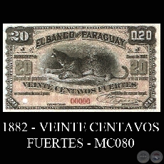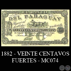 MC074 – VEINTE CENTAVOS FUERTES – FIRMAS: JOSÉ URDAPILLETA y J.B. GAONA
