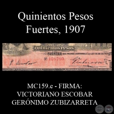 MC159.e – QUINIENTOS PESOS FUERTES – FIRMAS: VICTORIANO ESCOBAR y GERÓNIMO ZUBIZARRETA