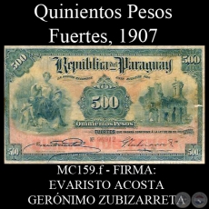 MC159.a – QUINIENTOS PESOS FUERTES – FIRMAS: EVARISTO ACOSTA y JUAN Y. UGARTE