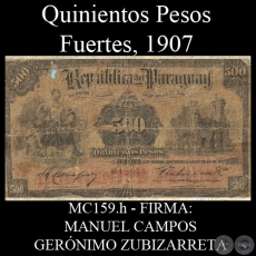MC159.h – QUINIENTOS PESOS FUERTES – FIRMAS: MANUEL CAMPOS y GERÓNIMO ZUBIZARRETA