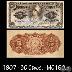 MC160.a – CINCO PESOS MONEDA NACIONAL o CINCUENTA CENTAVOS ORO SELLADO – FIRMAS: M. VIVEROS y ………. .