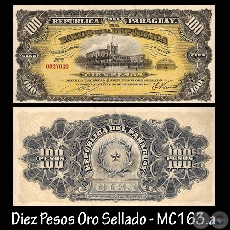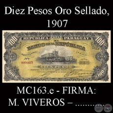 MC163.e – CIEN PESOS MONEDA NACIONAL o DIEZ PESOS ORO SELLADO – FIRMAS: M. VIVEROS y .......... .
