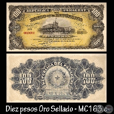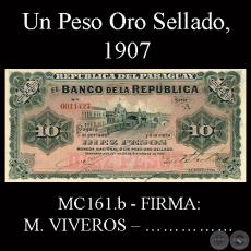 MC161.a – DIEZ PESOS MONEDA NACIONAL o UN PESO ORO SELLADO – FIRMAS: M. VIVEROS y SOLER RÍOS