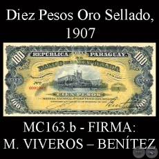 MC163.b – CIEN PESOS MONEDA NACIONAL o DIEZ PESOS ORO SELLADO – FIRMAS: M. VIVEROS y BENÍTEZ