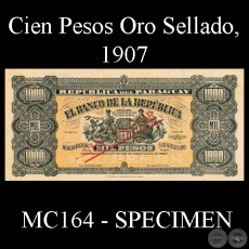 MC164 – MIL PESOS MONEDA NACIONAL o CIEN PESOS ORO SELLADO – FIRMAS: ……… . y ……… .