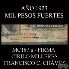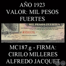 MC187.a – MIL PESOS FUERTES – FIRMAS: CIRILO MILLERES y ALFREDO JACQUET