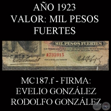 MC187.f – MIL PESOS FUERTES – FIRMAS: EVELIO GONZÁLEZ y RODOLFO GONZÁLEZ