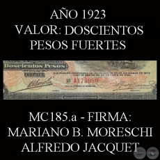 MC185.a – DOSCIENTOS PESOS FUERTES – FIRMAS: MARIANO B. MORESCHI y ALFREDO JACQUET