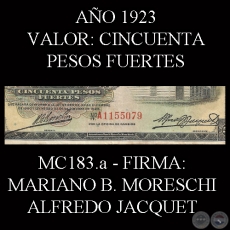 MC183.a – CINCUENTA PESOS FUERTES – FIRMAS: MARIANO B. MORESCHI y ALFREDO JACQUET