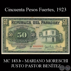 MC183.b – CINCUENTA PESOS FUERTES – FIRMAS: MARIANO B. MORESCHI y JUSTO PASTOR BENÍTEZ