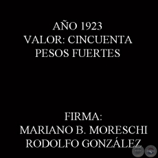 MC183.d – CINCUENTA PESOS FUERTES – FIRMAS: MARIANO B. MORESCHI y RODOLFO GONZÁLEZ