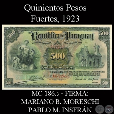 MC186.c – QUINIENTOS PESOS FUERTES – FIRMAS: MARIANO B. MORESCHI y PABLO M. INSFRÁN