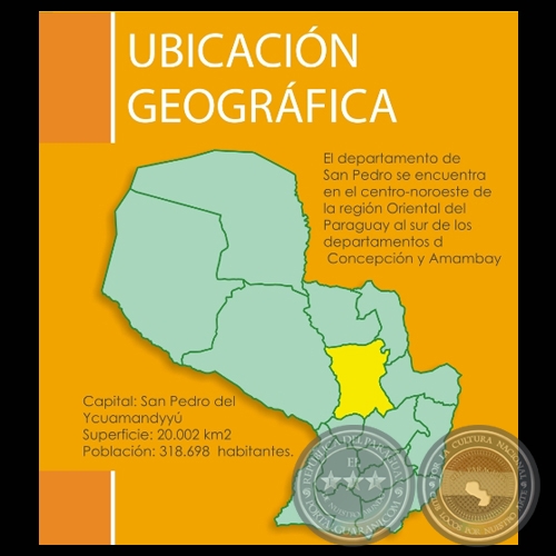 San Pedro de Ycuamandyyu, capital departamental, a una distancia de 410 kilómetros de Asunción.