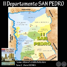 SAN PEDRO: Esta capital, antiguamente conocida con el nombre de Ycuamandy-yú (pozo o surgente de algodón o su parecido), está situada a tres leguas al Este de Pto. Antequera (Sobre el río Paraguay) y a tres kilómetros del río Jejuí, en cuya margen izquierda tiene el puerto de su nombre, que utilizan para la descarga de yerba y madera que viene del interior. Fundado el 16 de marzo de 1786 durante el gobierno de Pedro Melo de Portugal por José Ferreira y Pedro Gracia. Los edificios en su mayoría son de construcción moderna. Cuenta con una Catedral y un Obispado, Delegación de Gobierno, oficina de Correos y Telégrafos, Escuela Superior, Municipalidad y Juzgado de Paz, un campo de aterrizaje, Escuela de Comercio, Colegio de Bachillerato, Instituto de Formación Docente, colegio religioso a cargo de las Hermanas Dominicas, Sucursal Banco de Fomento del Paraguay, molino de Yerba y Mandioca, Fábricas de petit-gran. A los hijos de esta ciudad se los llama sampedranos. Su emisora Z.P. 32 Radio "Ycuamandiyú".