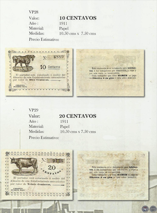 Para las transacciones comerciales, se utilizaron vales y fichas de distintas denominaciones, por las cuales, el portador estaba autorizado a recibir del almacén, carnicería y panadería de estos establecimientos; mercaderías por valor de las cantidades establecidas en los mismos.