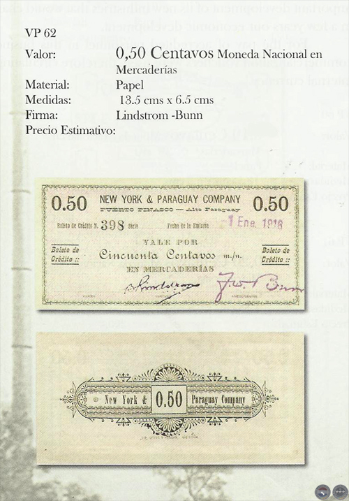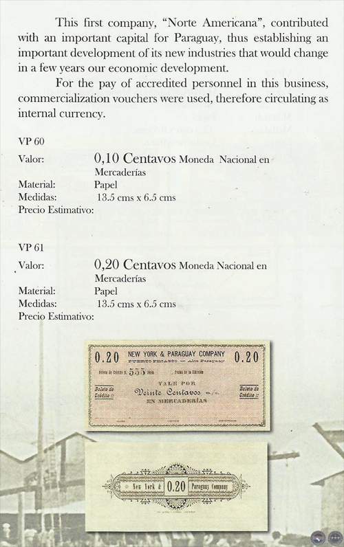 Fuente: FICHAS, VALES Y TOKENS DE LA REPÚBLICA DEL PARAGUAY 1863 - 2000. Editor: MIGUEL ANGEL PRATT MAYANS, Año 2009. NUMISMATICA INDEPENDENCIA S.A., Espacio web: www.nisa.com.py / Contacto: nisa@pla.net.py